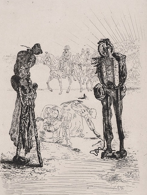 The Rosetta Stone of these illustrations is the work titled Quelque Chose a eu Lieu (1934). Here, Dalí reinterprets Millet’s Angelus, replacing the pious peasants with the umbrella and the sewing machine.