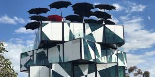 In a stunning tribute to the very iconography discussed in this article, the roof of the d’Arenberg Cube features a striking installation. You will find a sea of umbrellas; all of them are black, except for one solitary red umbrella.