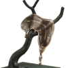 In this sculpture, Dalí transforms the image of a grand piano into a surreal dancing object.The traditional wooden legs of the piano are replaced with actual female legs, booted feet and skirted frills. By adding these unique, surprising features, Dalí transforms the mundane and inanimate into an animated object, typical of Dalí’s Surrealism.The addition of the golden female figure gives the sculpture an elegant and graceful dimension. Her ballet dancer pose suggests a classical performance which contradicts with the bawdy music hall dance implied by the piano’s frilled petticoats.